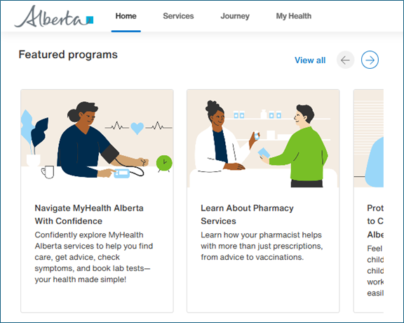 Through MyHealth.Alberta.ca you can continue to access your lab results, immunizations, medication history, and other personal health information.